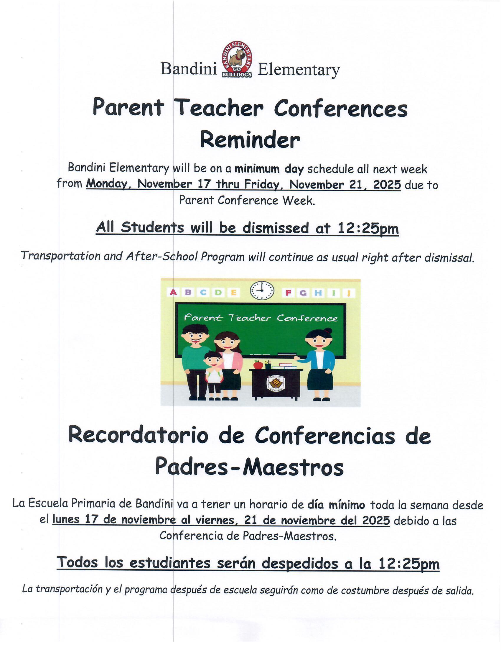 Fall Parent Conference Reminder / Early Dismissal All Week