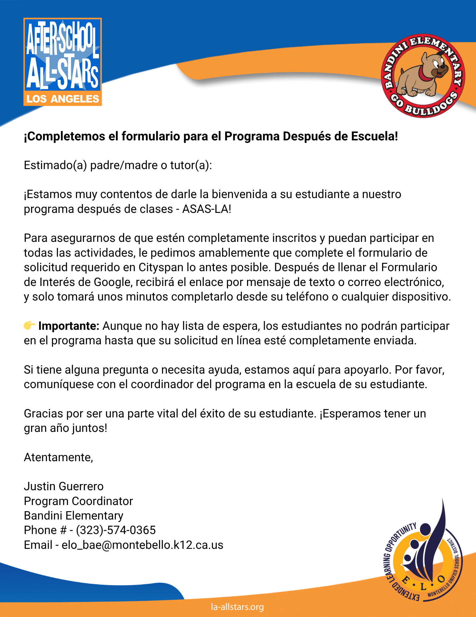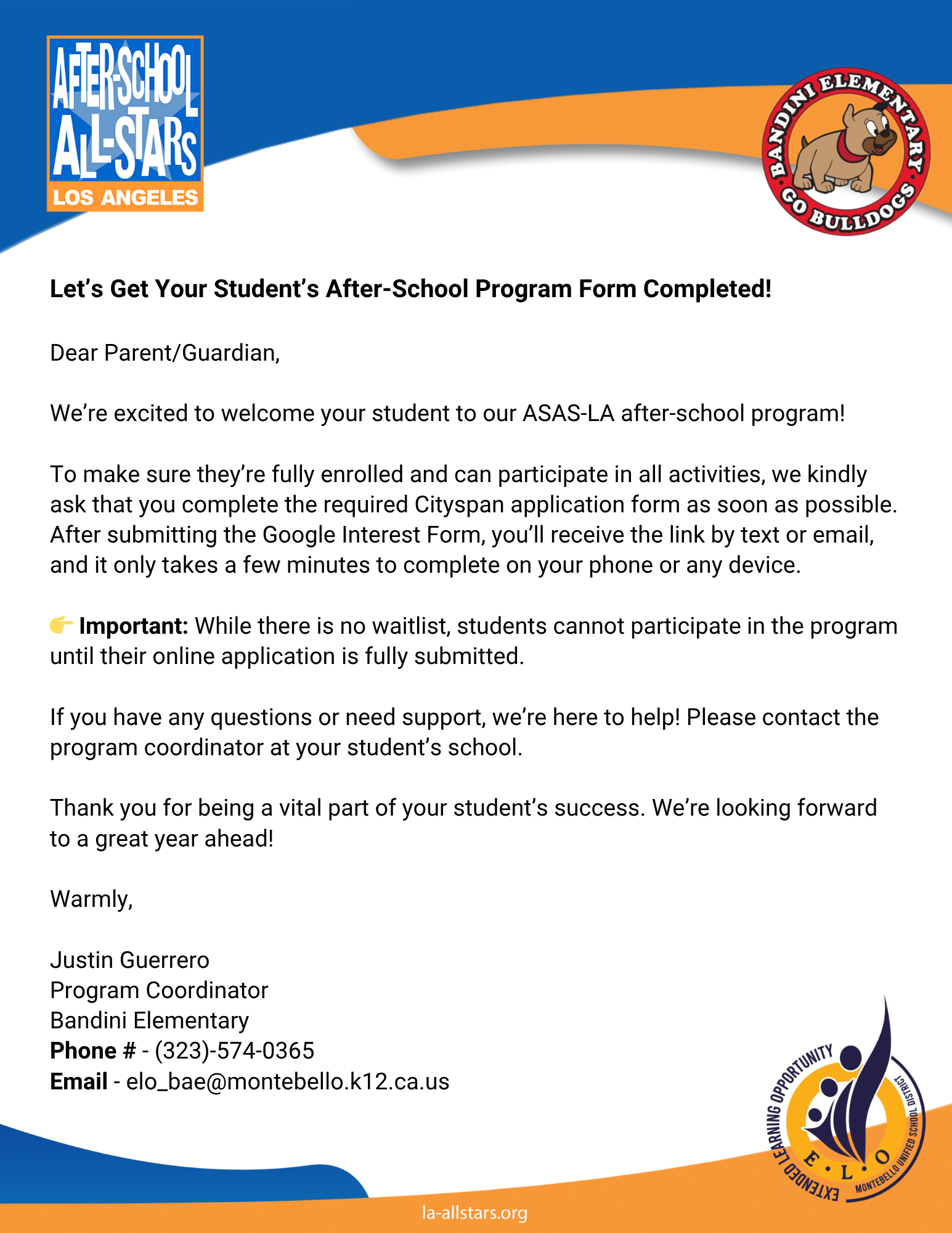 AFTER-SCHOOL ALL-STARS PRE-REGISTRATION FORM
